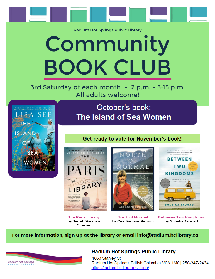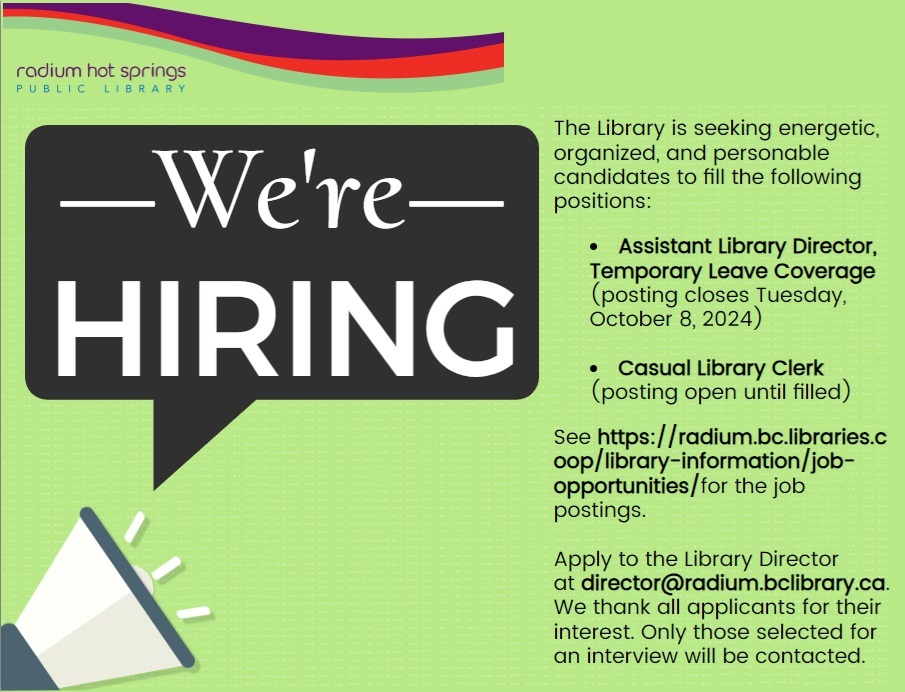 The Radium Hot Springs Public Library gratefully acknowledges that it operates on the traditional, unceded territories of the Ktunaxa and Secwépemc Peoples, as well as the chosen home of the Métis.