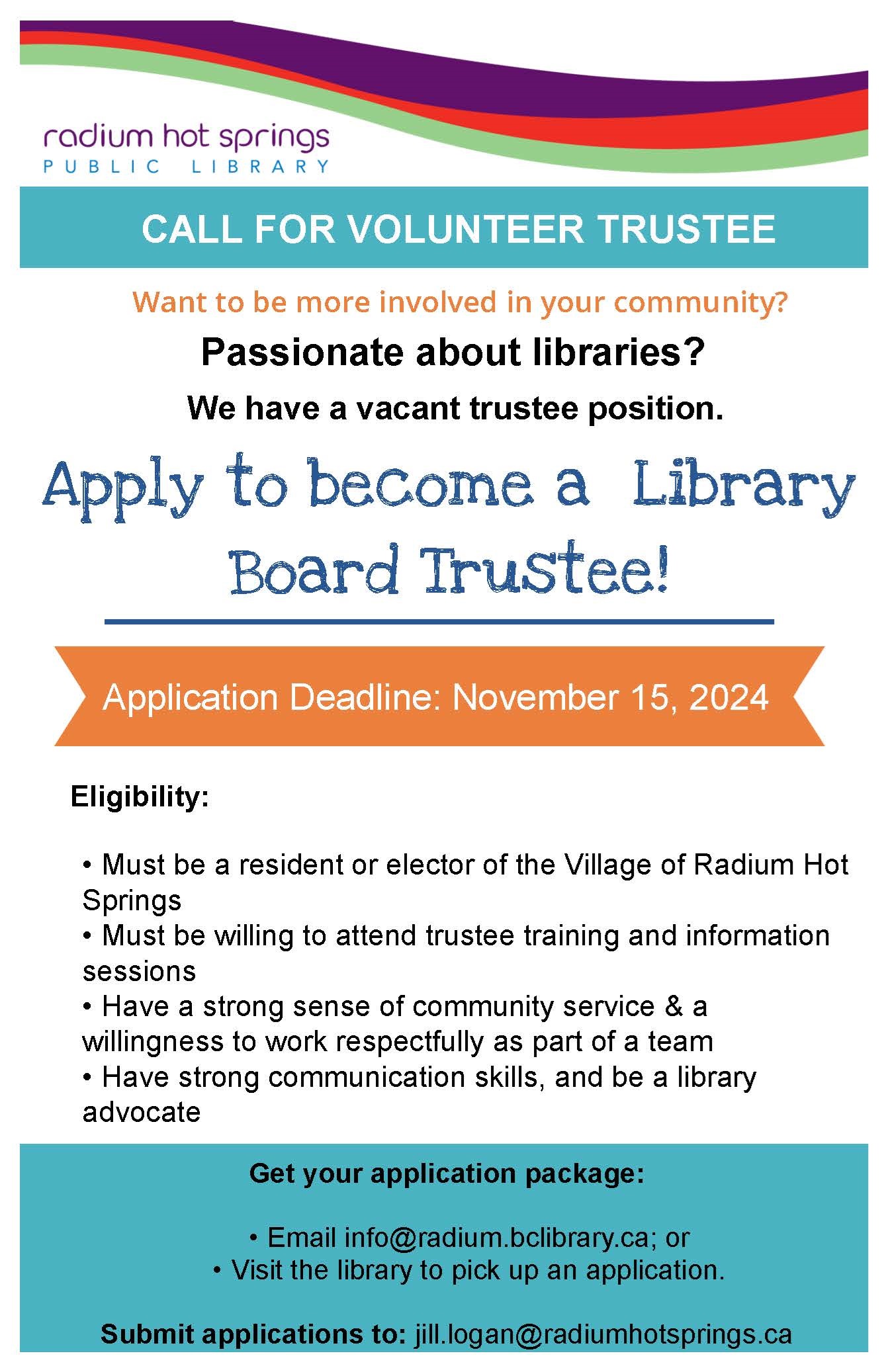 Radium Hot Springs Public Library is looking at ways to support the project, and has published a Letter of Support which is available to readhere. You can also find information on Invermere Public Library's Bookmobile webpage.