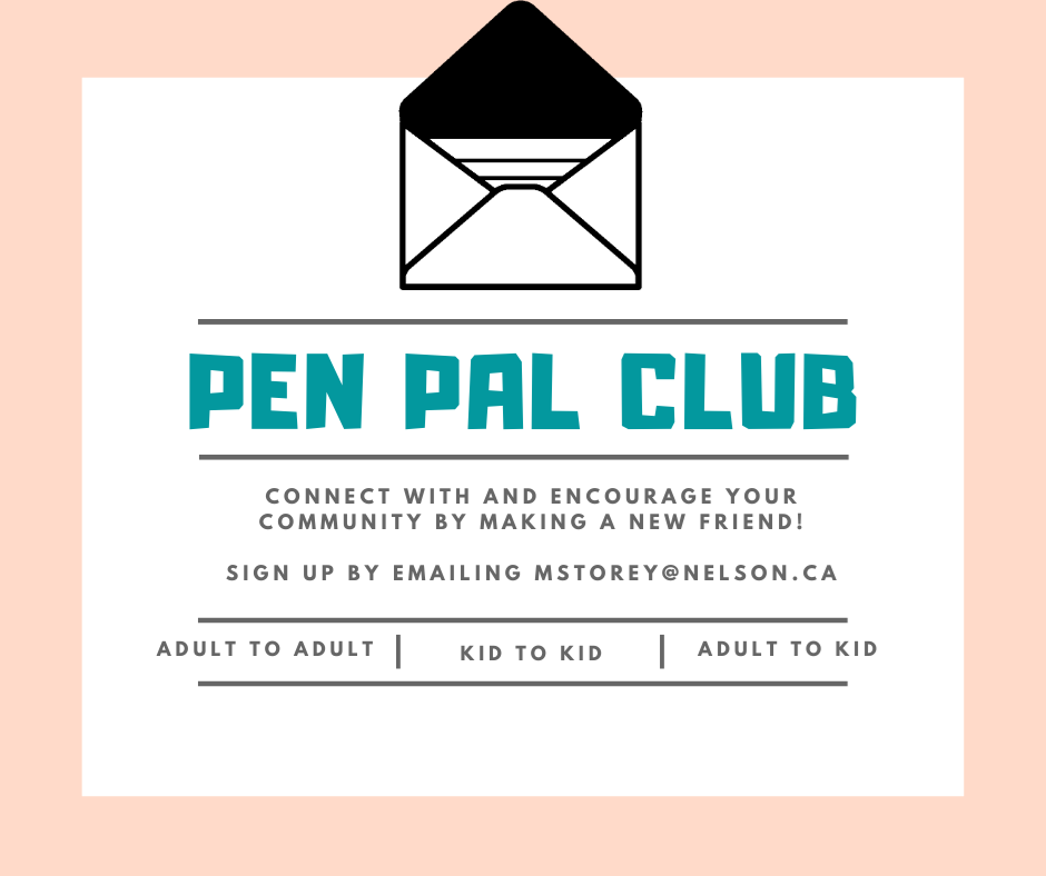 Pen Pal Club Do you want to be a pen pal to someone in Nelson? We can set that up for you!