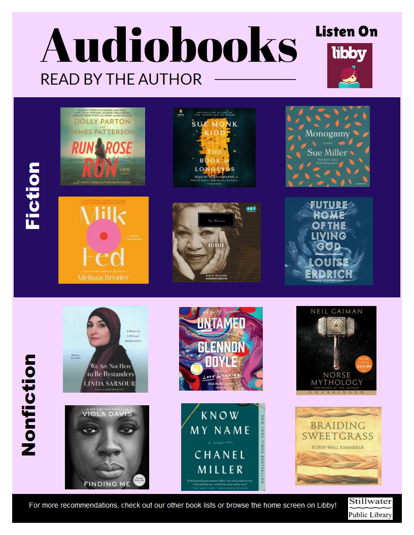 Some of our audio favorites include books read by the author and those narrated by screen actors. Click on a cover to learn more.