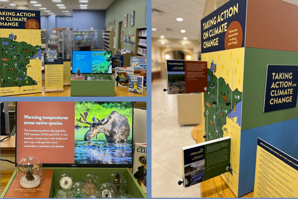 Climate Change Exhibit: Through August 12, you can view Minnesota's Changing Climate, an exhibit thatshowcases what communities and organizations are doing throughout Minnesota to address climate change. Another component of the exhibit illustrates the effects that climate change is already having on Minnesota. This traveling tabletop exhibit is brought to the library by State Library Services in partnership with the Minnesota Pollution Control Agency.