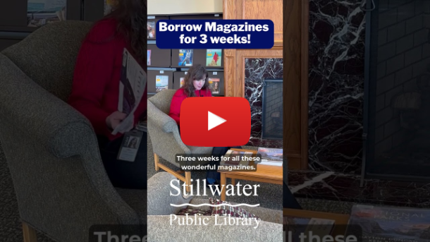 Current issues are available for in-library use, and past issues are ready to check out for three weeks. Stop in to browse, settle into our comfy chairs, and enjoy the views of Stillwater and the St. Croix River Valley while you read.
