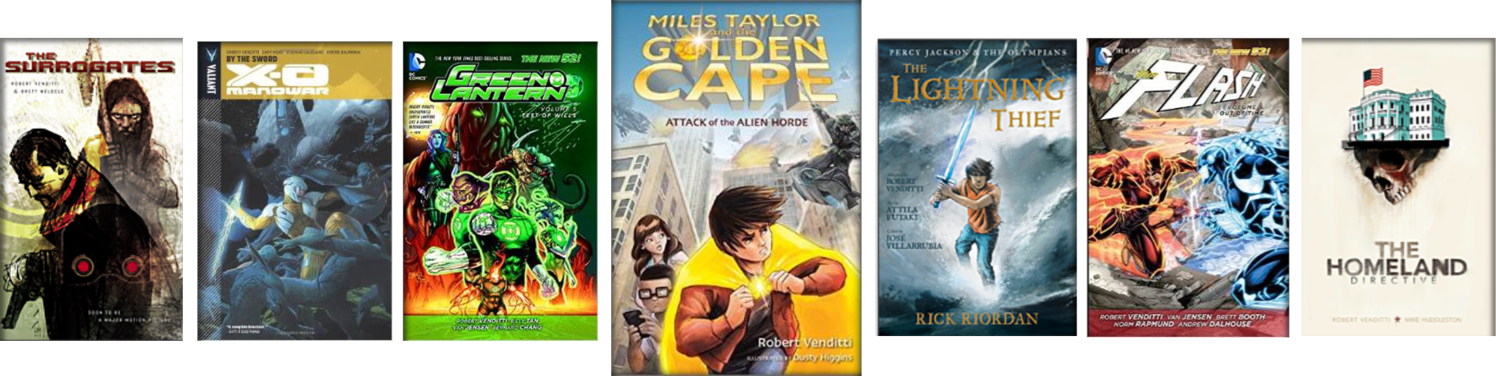 Robert Venditti is the New York Times best-selling author of "The Homeland Directive" and the sci-fi graphic novel series "The Surrogates," the first installment of which was adapted into a feature film starring Bruce Willis and Ving Rhames. He currently writes the ongoing monthly comic book series "X-O Manowar," "Green Lantern," and "The Flash."