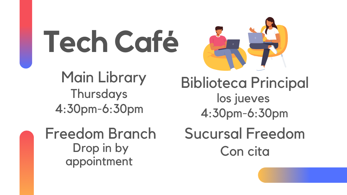¿Le interesa aprender sobre tecnología? Visítanos durante nuestro programa semanal Tech Café, donde tendrás la oportunidad de obtener respuestas a preguntas básicas relacionadas con la tecnología