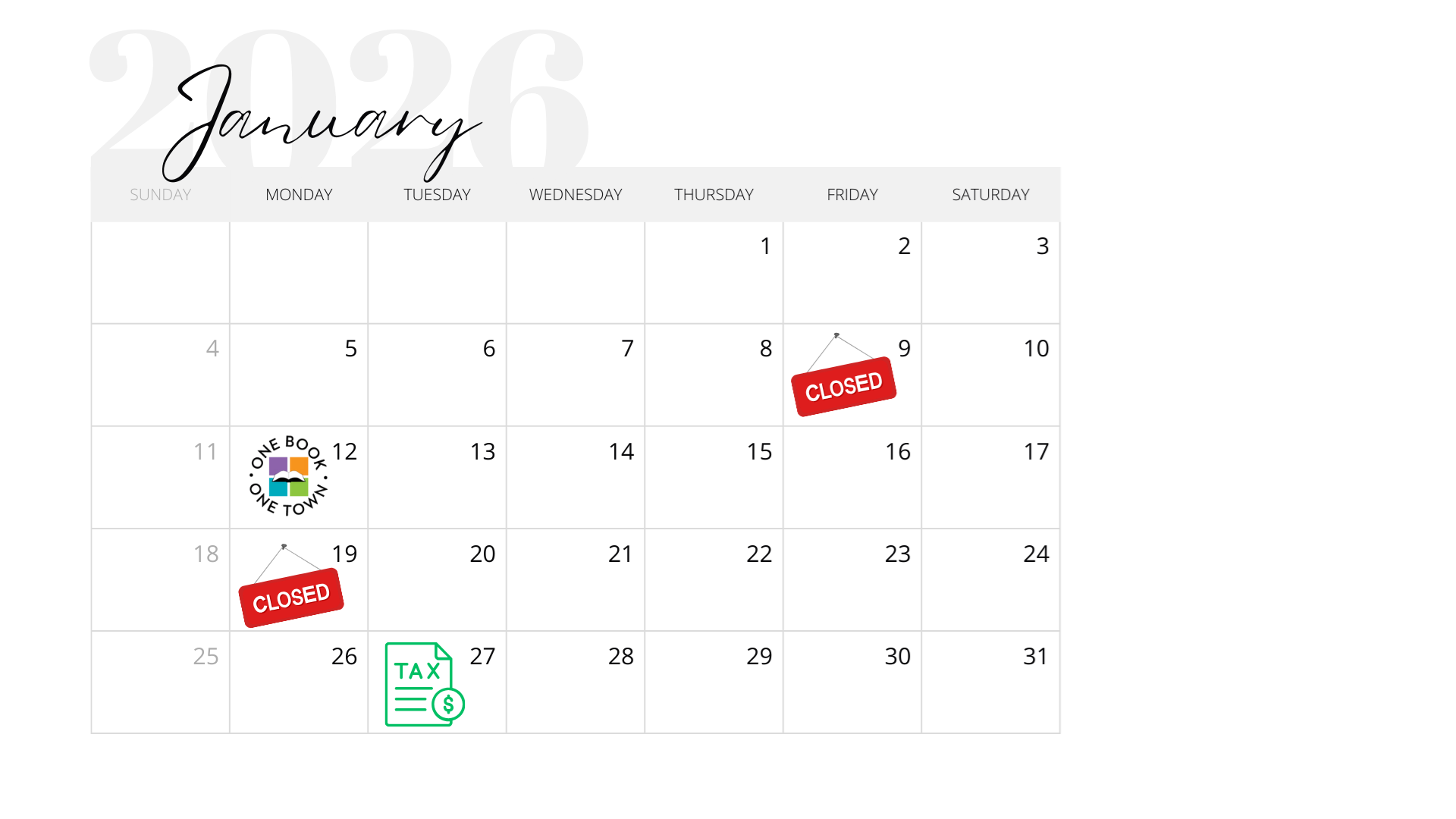 One Book One Town Announcement Fairfield Public Library and its community partners will announce the One Book One Town selection for 2026 in the Periodicals Room at Main Library on Monday, January 12, at 11:00 am. The event will be in-person and released on the Library's social media platforms simultaneously. Copies of this year's book selection will be available to borrow in print or digitally from Fairfield's libraries or to purchase at various bookstores in Fairfield and Black Rock. While the chosen book is geared to teens and adults, a complementary book selection will be available for middle-grade readers. The author will be appearing in person on Wednesday, March 4, at the Sacred Heart University Theater in downtown Fairfield. One Book One Town is made possible by the generous support of the Friends of the Fairfield Public Library.