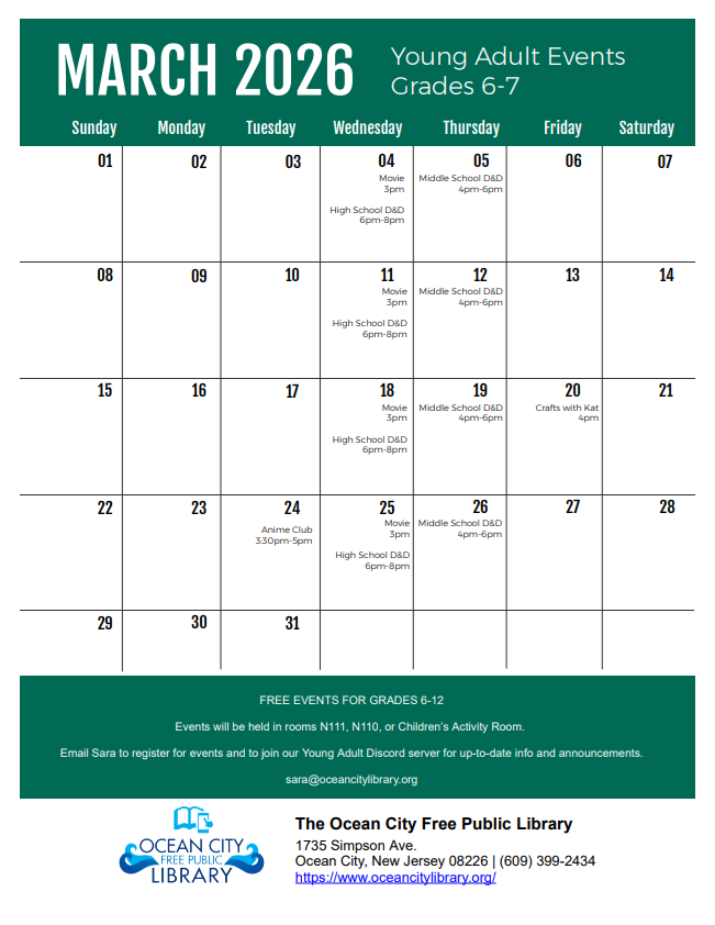 March Young Adult Events