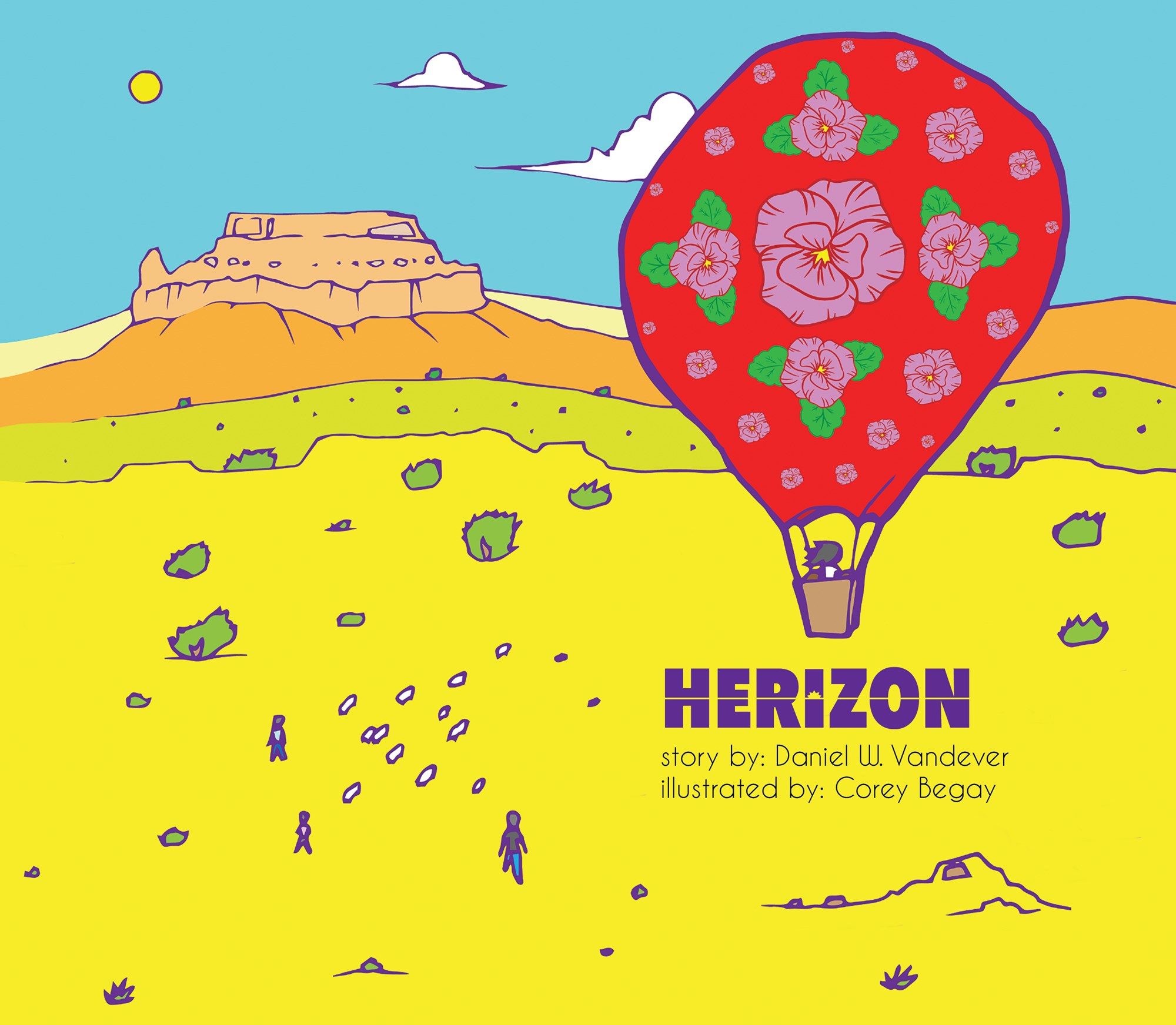 “Herizon” by Diné/Navajo Daniel W. Vandever, and Illustrated by Diné/Navajo artist Corey Begay, follows the journey of a young, Diné girl as she is asked by her grandmother to help retrieve a flock of sheep. Join the girl in her adventure across land and water aided by a magical scarf that will expand your imagination and transform what you think is possible.