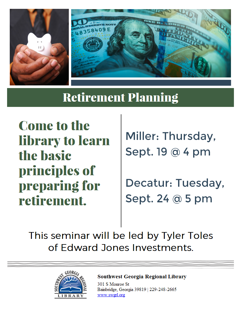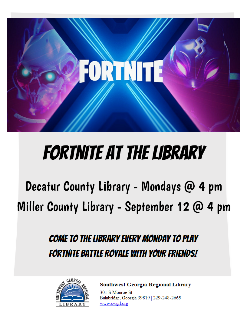 Southwest Georgia Regional Library 301 S Monroe St Bainbridge, Georgia 39819 229-248-2665www.swgrl.org |