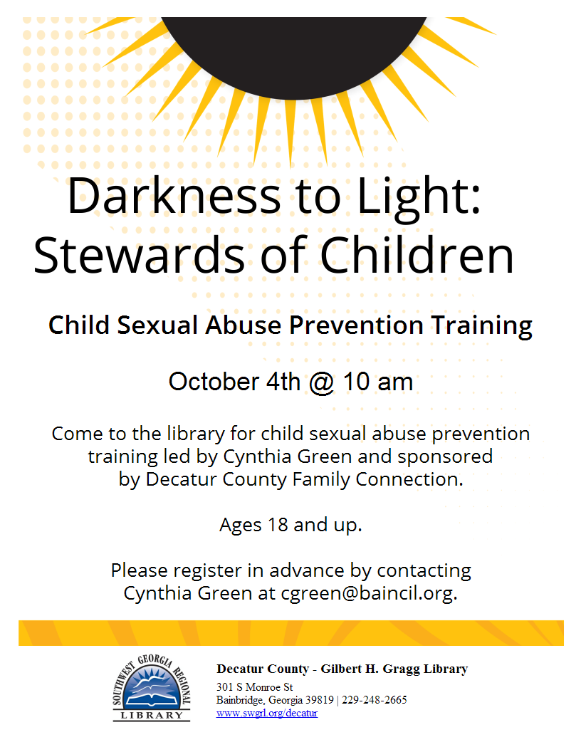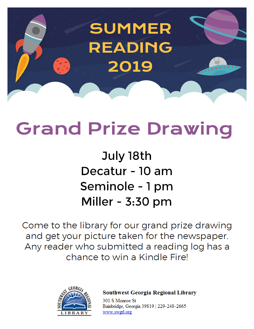 Southwest Georgia Regional Library 301 S Monroe St Bainbridge, Georgia 39819 229-248-2665www.swgrl.org |