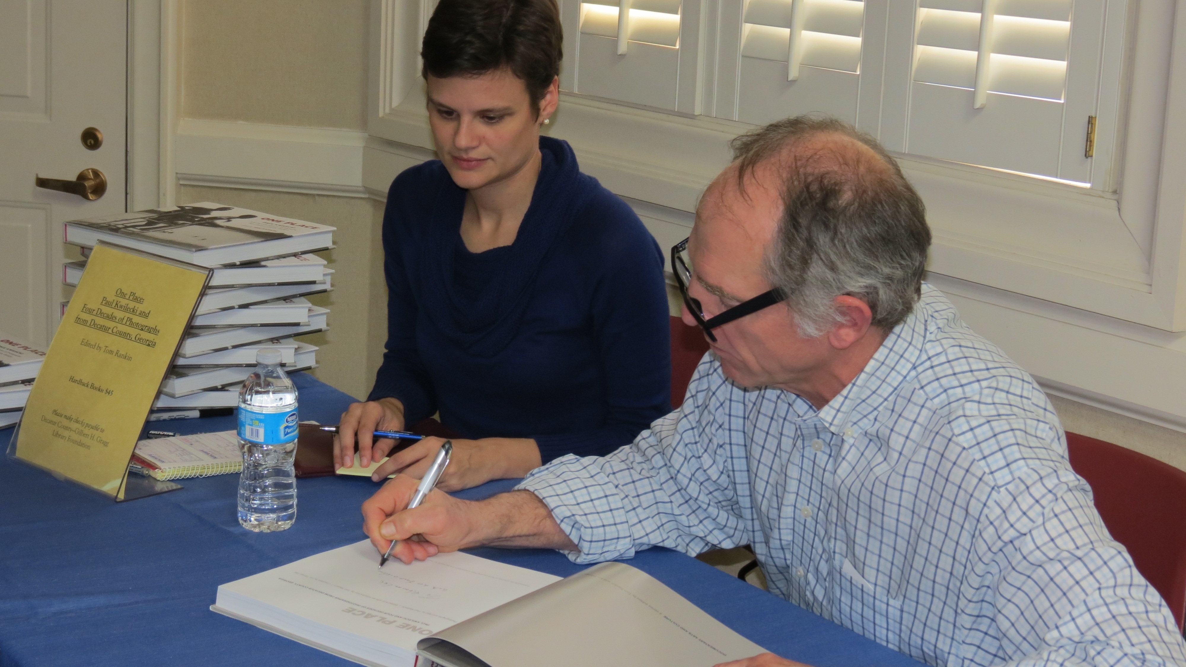 Catherine Vanstone watches Mr. Rankin sign books. A lecture and book signing for One Place: Paul Kwilecki and Four Decades of Photographs from Decatur County, Georgia took place in Bainbridge, Georgia on Friday, February 28th at the Decatur County - Gilbert H. Gragg Library. The library hosted the book’s editor, Tom Rankin, who spoke about creating the compilation from hundreds of photographs and also signed copies. The lecture was held in conjunction with the Firehouse Gallery’s exhibit of Kwilecki’s works which were on display there on loan from Duke University. A few books are still available for purchase and make wonderful gifts. Each copy is hardbound and cost $45.00. For additional photos of the event go to our Facebook page and view albums.