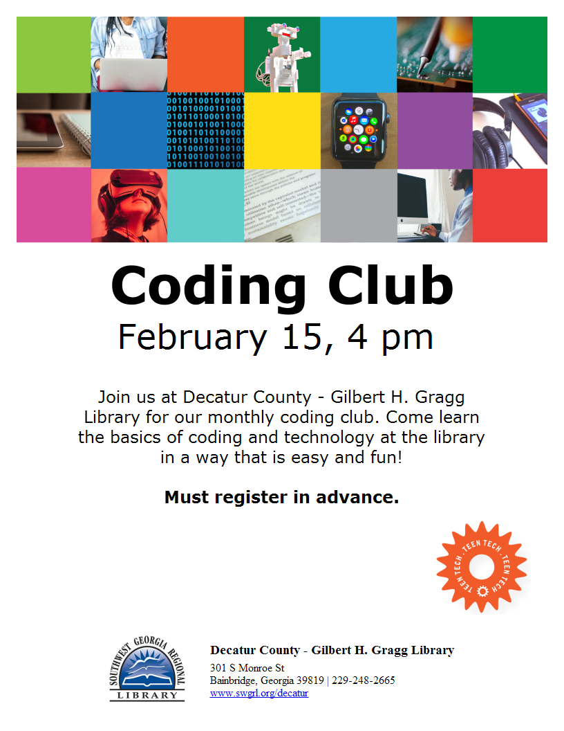 Southwest Georgia Regional Library 301 S Monroe St Bainbridge, Georgia 39819 229-248-2665www.swgrl.org |