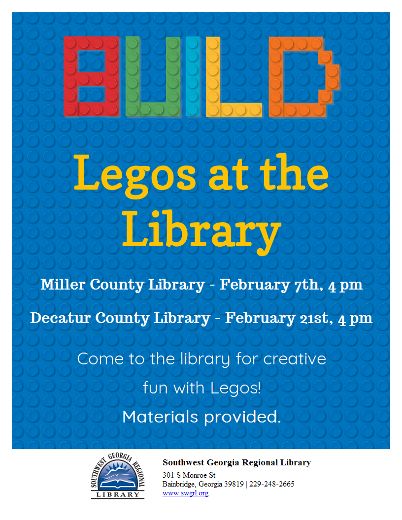 Southwest Georgia Regional Library 301 S Monroe St Bainbridge, Georgia 39819 229-248-2665www.swgrl.org |