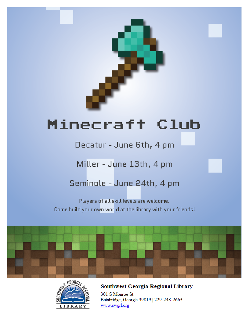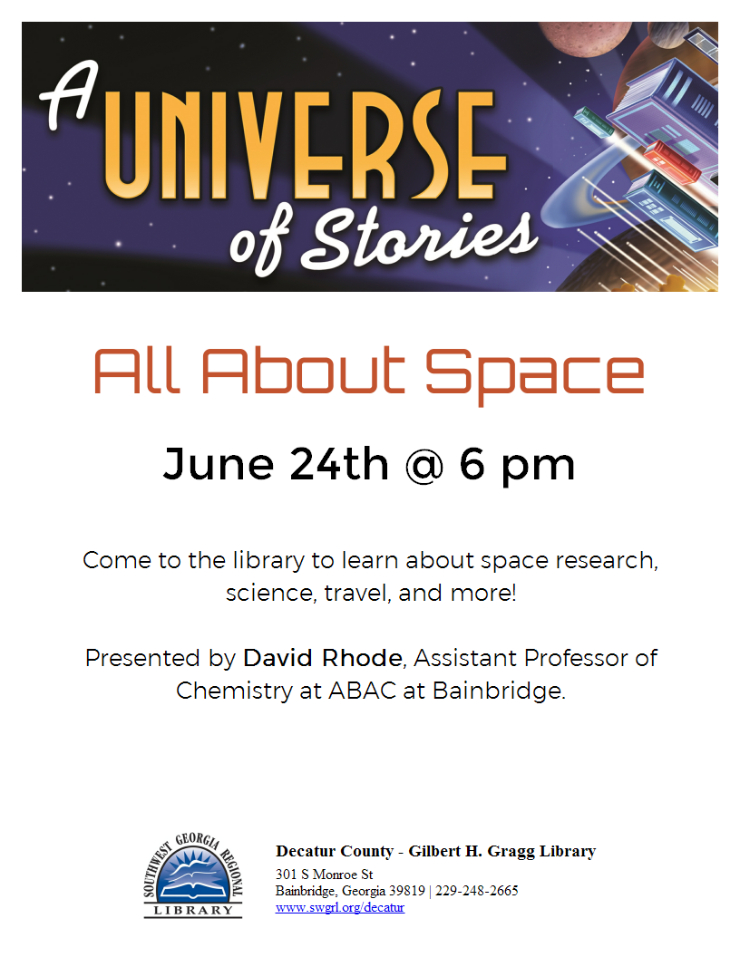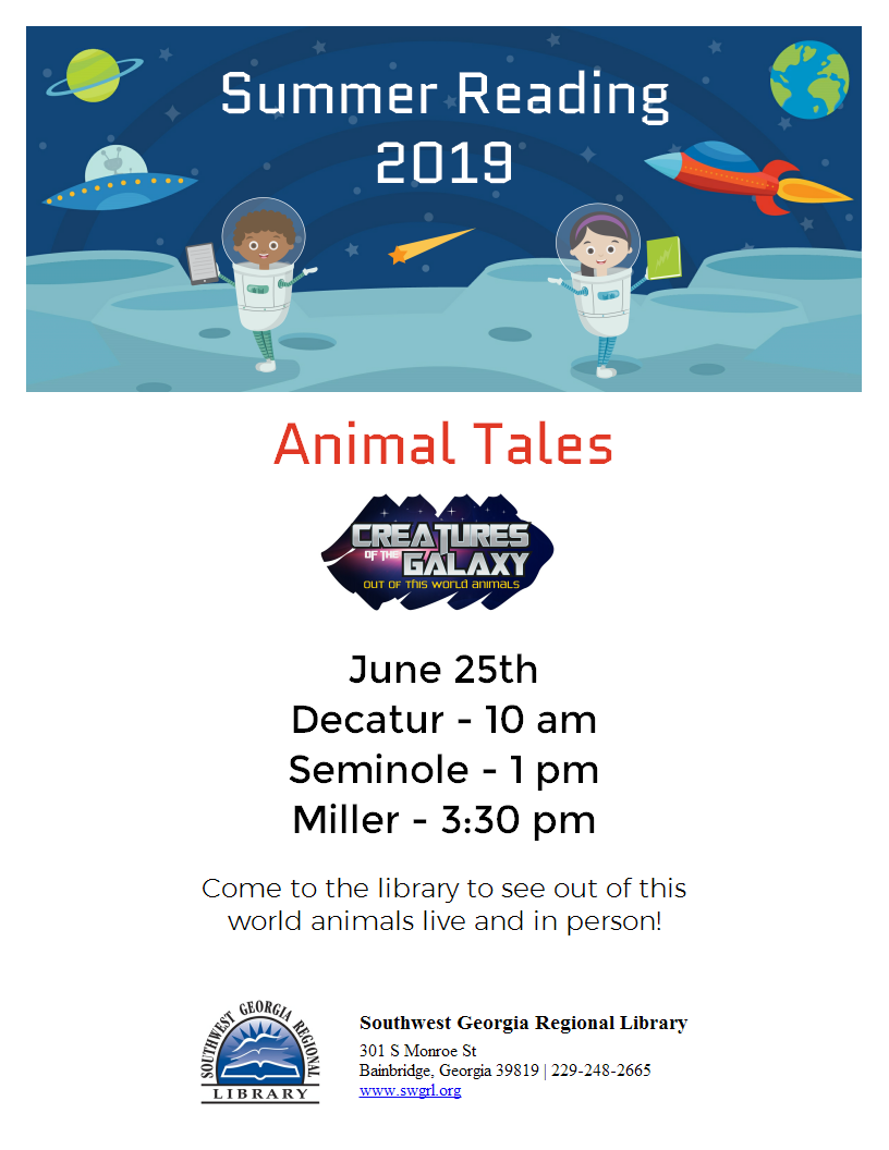 Southwest Georgia Regional Library 301 S Monroe St Bainbridge, Georgia 39819 229-248-2665www.swgrl.org |