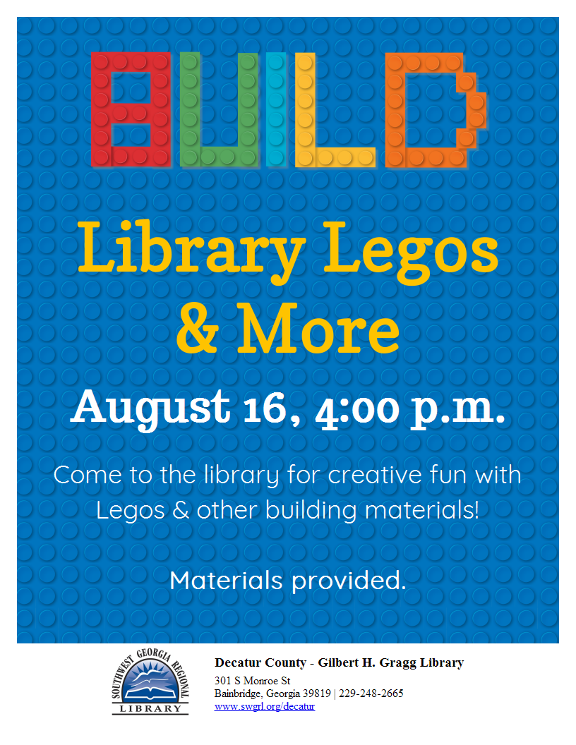 Southwest Georgia Regional Library 301 S Monroe St Bainbridge, Georgia 39819 229-248-2665www.swgrl.org |