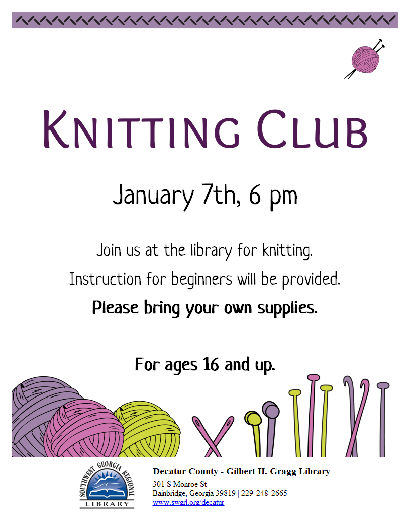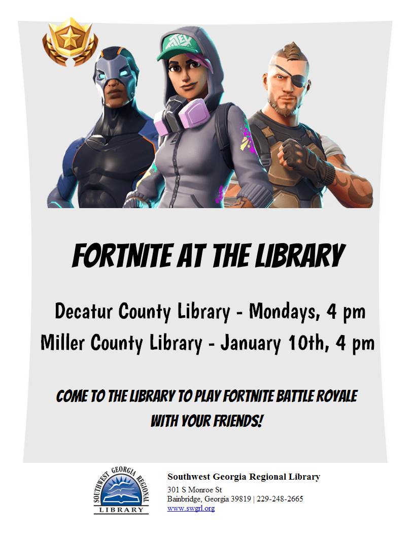 Southwest Georgia Regional Library 301 S Monroe St Bainbridge, Georgia 39819 229-248-2665www.swgrl.org |