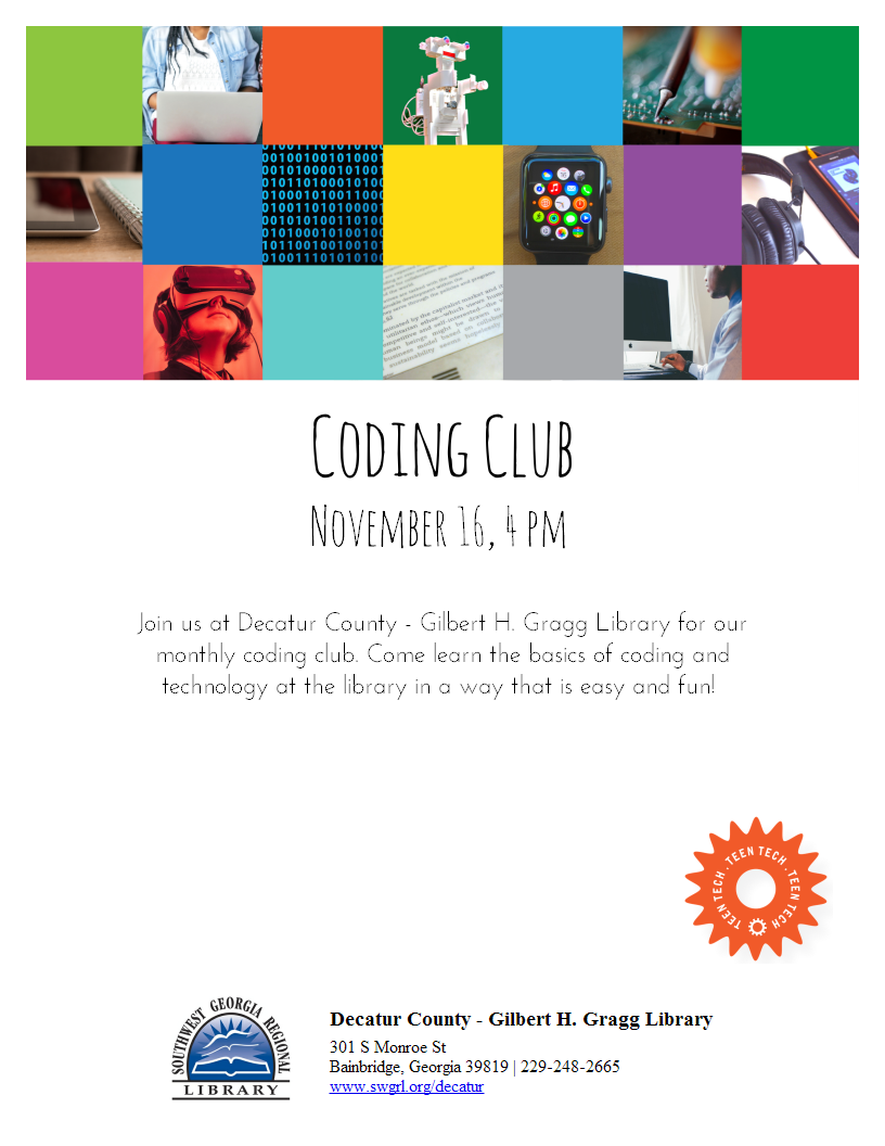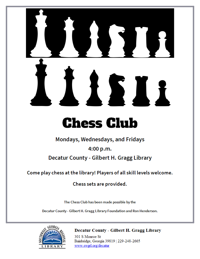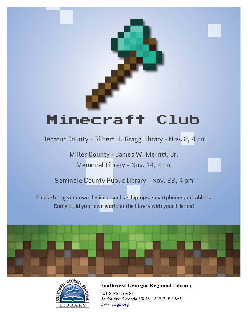 Southwest Georgia Regional Library 301 S Monroe St Bainbridge, Georgia 39819 229-248-2665www.swgrl.org |