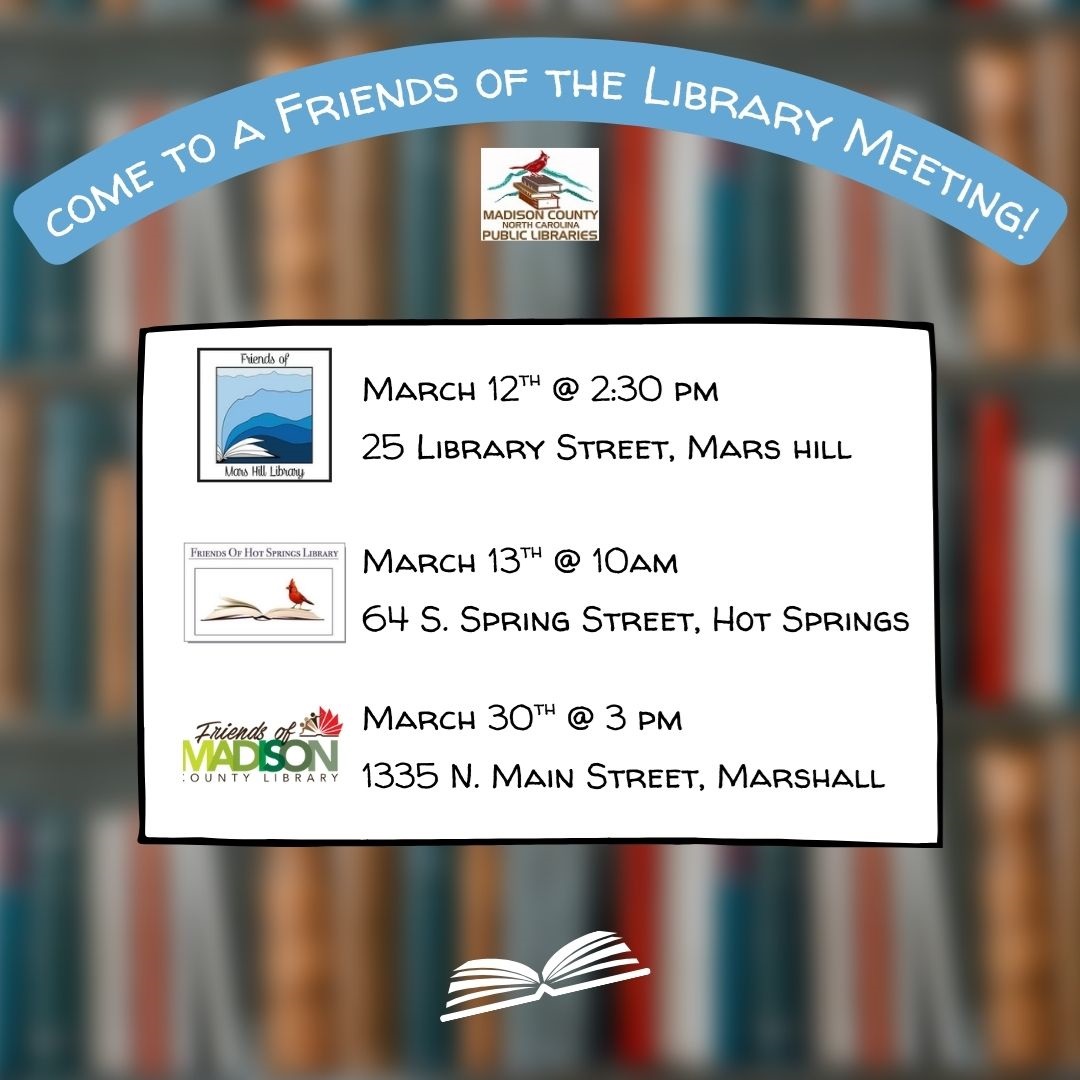 Meets the fourth Wednesday of the month at the Mars Hill Library at 1 pm