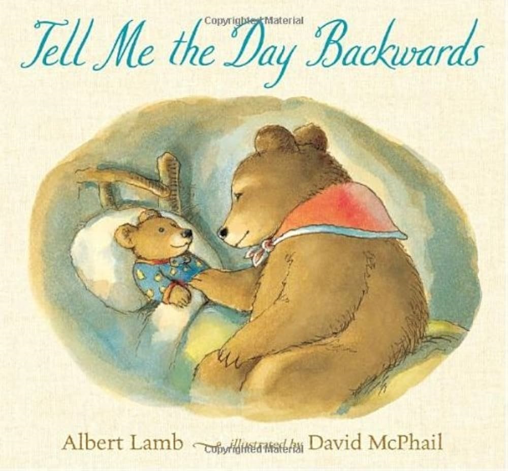 As he gets into bed, Timmy Bear asks his mother to play a game with him in which they remember everything he did during the day, but in reverse order.