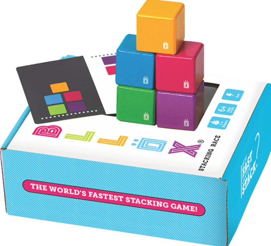 Ages 6+. Bllöx helps build and improve dexterity, fine and gross motor development, color recognition, pattern recognition and more…but most importantly, it is heaps of FUN for the whole family! Each Player gets 5 blocks; then just flip over a card and race to build what you see!
