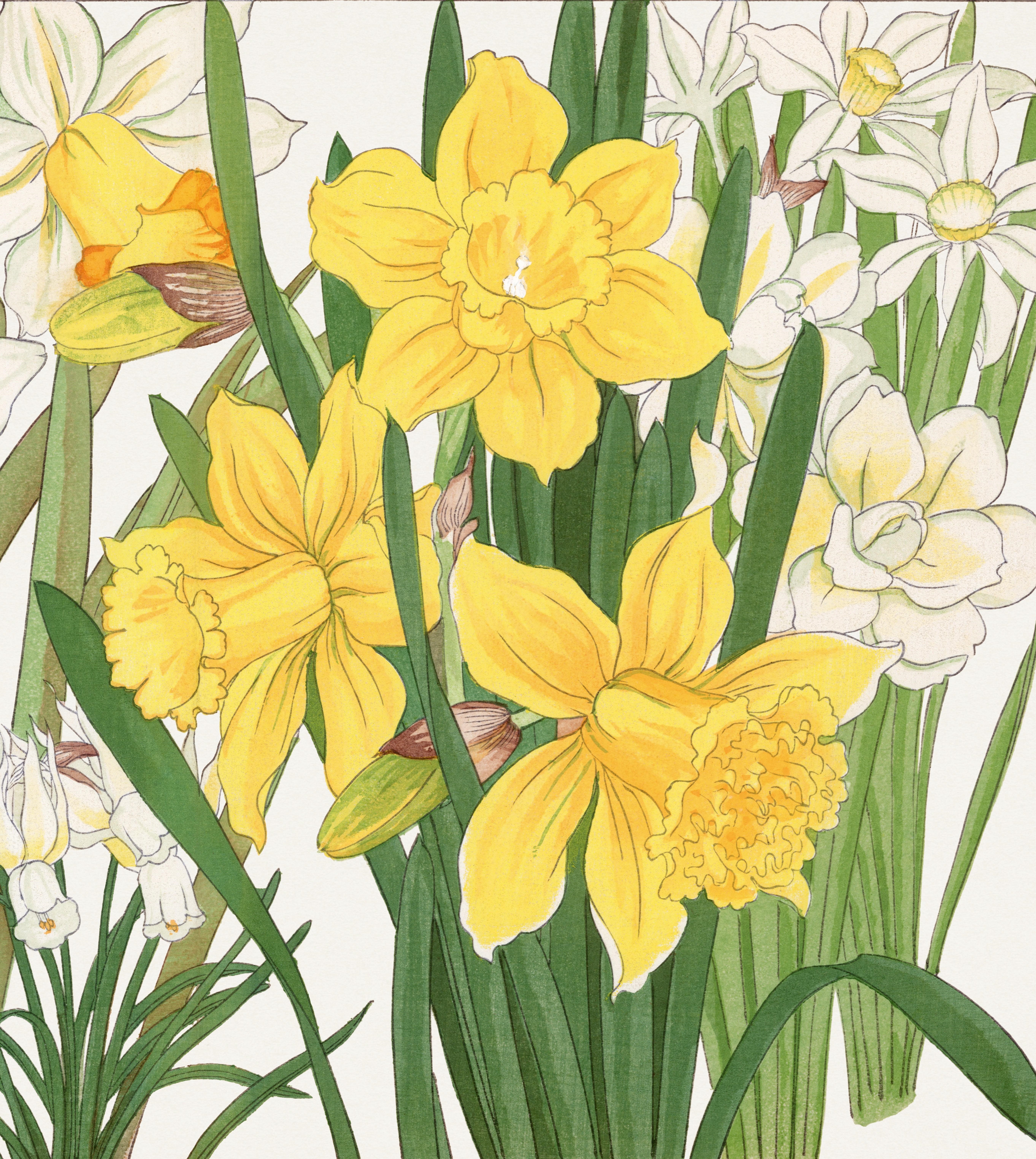 "Nothing Gold Can Stay" Nature's first green is gold, Her hardest hue to hold. Her early leaf's a flower; But only so an hour. Then leaf subsides to leaf, So Eden sank to grief, So dawn goes down to day Nothing gold can stay. - Robert Frost Spring Daffodil Flowers by Kônan Tanigami 1879-1928