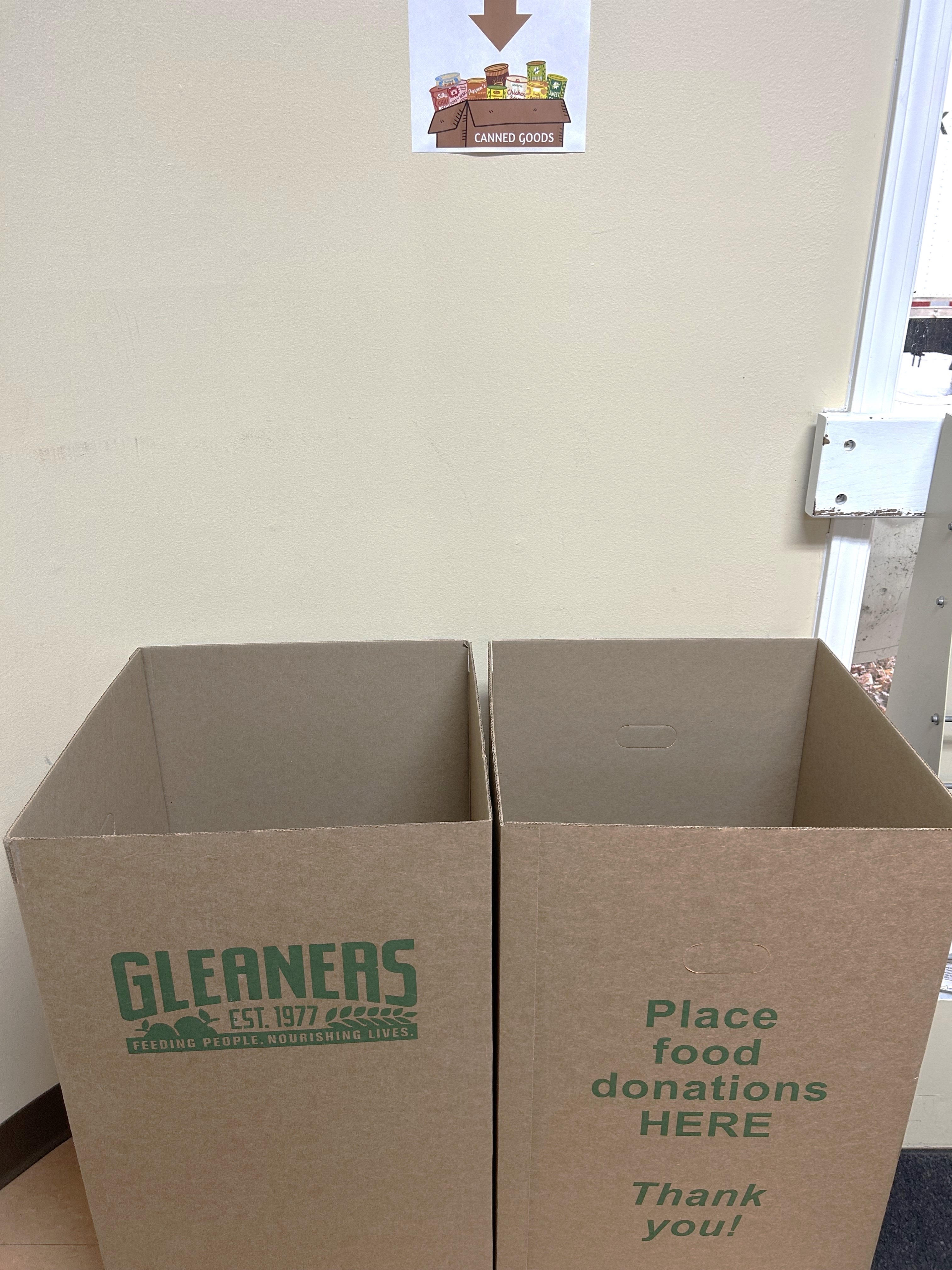 - Donations can be placed in the Gleaners boxes that are stationed in our curbside pickup vestibule.