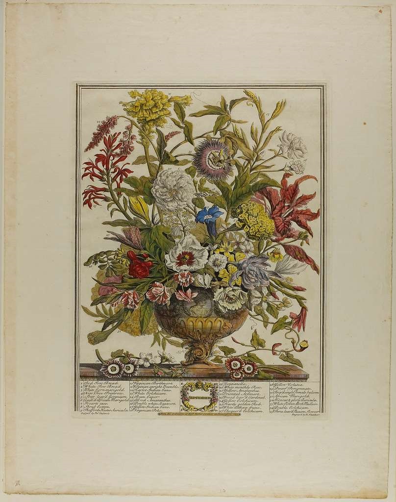 September Their summer romance over, the lovers still cling to each other the way the green leaves cling to their trees in the strange heat of September, as if this time there will be no autumn. Painting Henry Fletcher - "September," from Twelve Months of Flowers, England