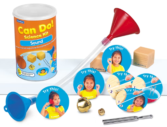 Ages 3+. Discover sound with tons of materials for hands-on exploration. Photo activity cards make it a cinch for kids to conduct experiments on their own with no reading required.