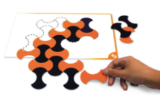 Ages 3+. Introduce early geometry shapes and their relationship to each other with the chance to improve visual and motor coordination while gaining experience in problem solving and recognizing and matching colors and shapes. Each card indicates the needed pieces, then has a shape. Use the indicated pieces to build the shape directly on top of the drawn shape on the card. There are 6 cards for each of the 5 skill levels.
