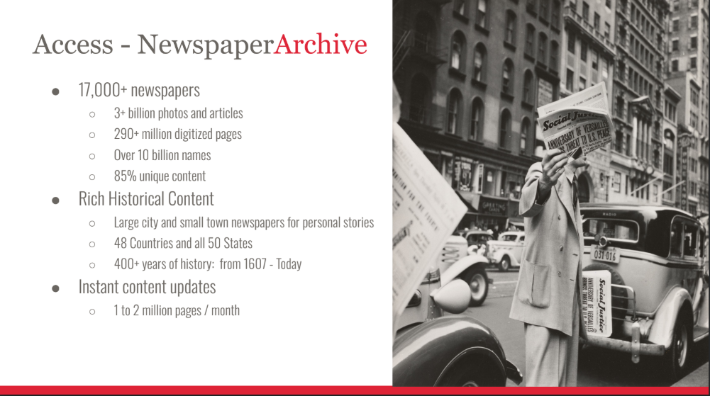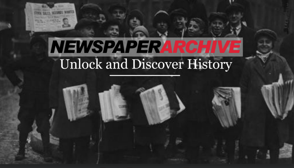 For the next 30 days, we have received access to a new database for genealogy research called Newspaper Archive. This is the largest historical newspaper database online, contains tens of millions of newspaper pages from 1607 to present. Every newspaper in the archive is fully searchable by keyword and date, making it easy for you to quickly explore historical content.