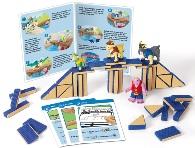 Ages 3+. Engineer a happy fairy tale ending as you construct a bridge that keeps three goats safe from the troll. Develop skills in using the design process; exploring cause and effect; and experimenting with size, weight and balance as you are naturally inspired to explore a challenging situation until you find a solution.