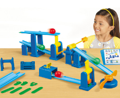 Pre K- Grade 2. Set off a chain reaction of fun! Children can set up a course of ramps, pendulums, hammers, switches and more, then drop a ball onto the tracks and go for the goal box! After each test run, kids will fine-tune the placement, distance and angle of each piece—getting firsthand practice with STEM concepts such as gravity, force and momentum!