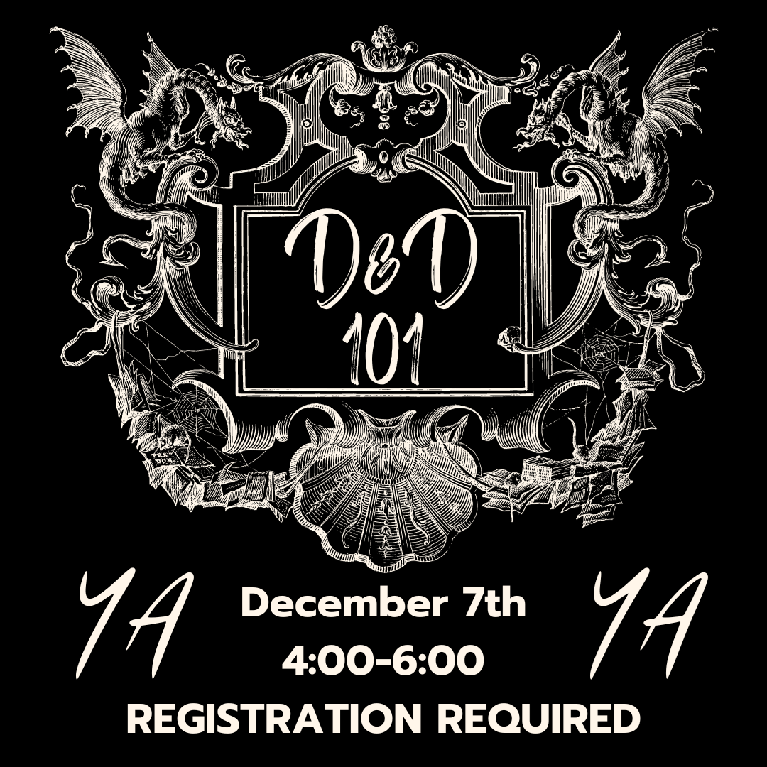 Adventure awaits, if you’re brave enough. Learn how to play Dungeons and Dragons alongside other library patrons. Join us and prepare your very own character ready to partake in all manner of questing. Leave with the necessary knowledge to join in on future YA D&D Programs or to play with your friends at home.