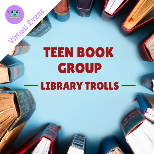 Teen Book Group - Library Trolls Monday, March 15 l 4-5 pm Discuss genres, tropes, and favorite characters while enjoying the companionship of fellow readers. No required reading allowed! Registration required to receive Zoom link by email.