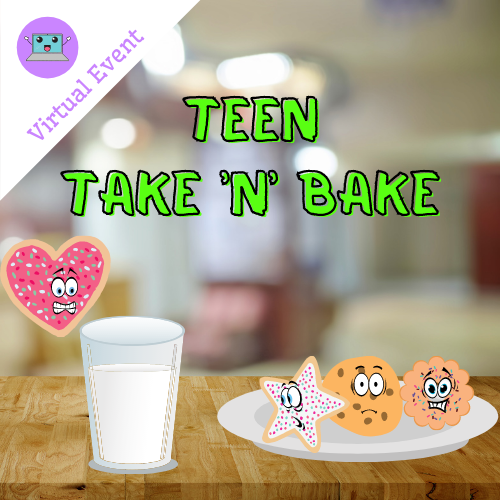 Teen Take 'n' Bake - XXL Sugar Cookie Saturday, March 20 l 1-2:30 pm Let's bake! Make an extra-extra-large sugar cookie while hanging out on Zoom and playing games. Most ingredients provided by the Library. Register to receive the Zoom link, then stop by the Library to pick up your ingredients or request via curbside pickup, starting Monday, March 15. Gluten-free? Email Ms. Caitlin for the recipe.