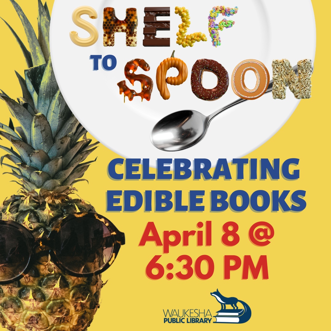 Shelf to Spoon: Celebrating Edible Books April 8 @ 6:30 PM Waukesha Public Library Discover some fun, book-inspired creations from our past Edible Books Contests. Learn to make and sample some simple, tasty projects. Registration is required.