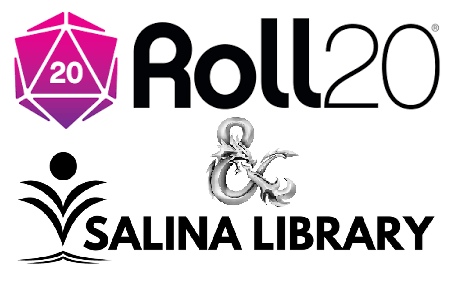 Dungeons & Dragons on Roll20: Sponsored by Salina Library Happening Now Would you like to play D&D online? From the novice to the level 20 player, all are invited to join the Roll20 virtual tabletop game! If you’d like to DM, you can run a game or learn how to do it from an experienced Dungeon Master. You’ll need a computer, a mic, and high speed internet; a camera is optional. Want to learn more? Email us at DandD@salinalibrary.org.