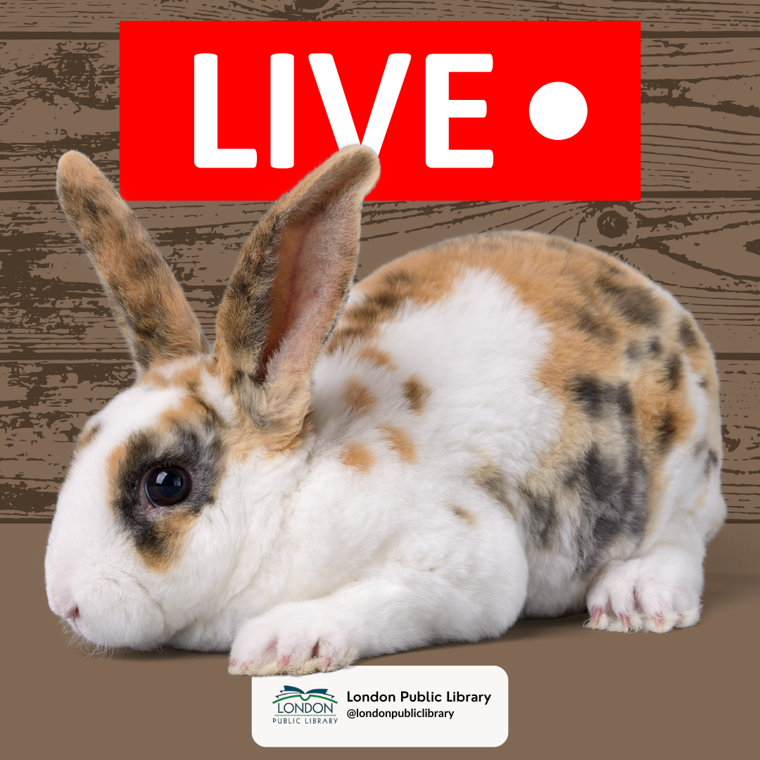 Come visit a live bunny at the library during library hours! Or, join the London Public Library LIVE on Facebook to see Clover at her most active!