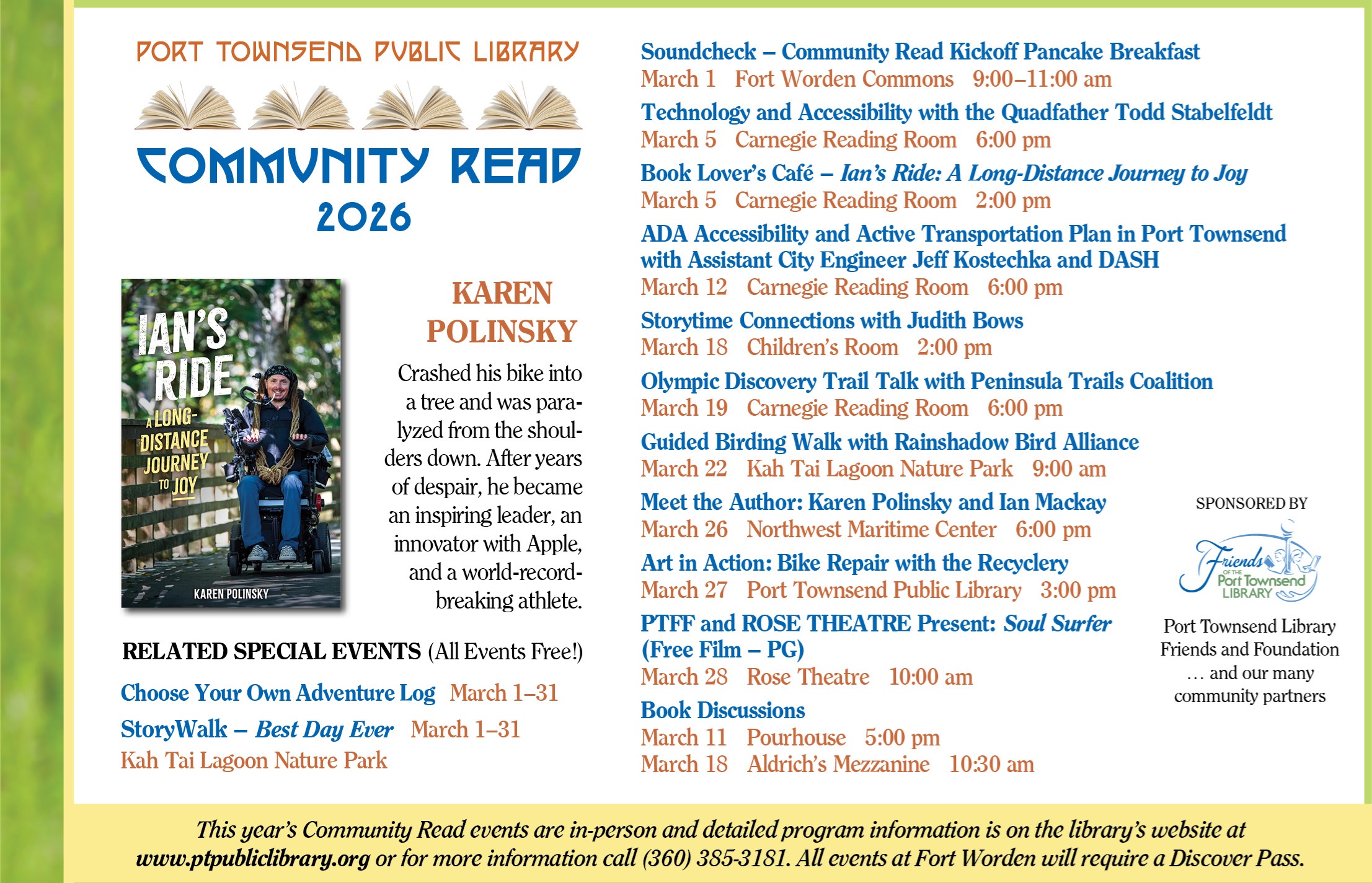 It's Time for the 2026 Community Read! The Port Townsend Public Library is excited to hold our 21st annual Community Read this month, featuring Ian’s Ride: A Long-Distance Journey to Joy by Karen Polinsky.