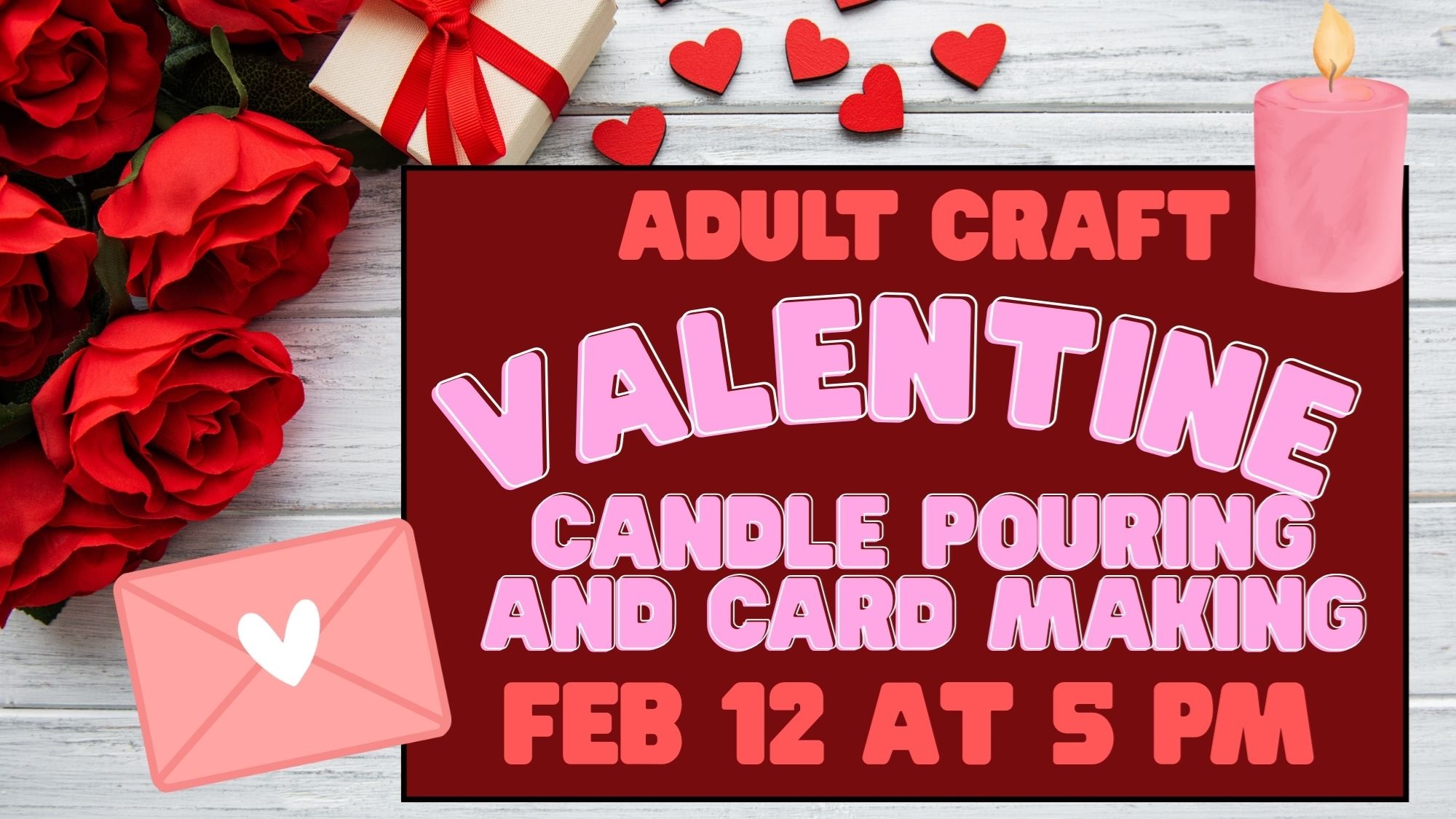 Feb 12 at 5 PMLearn to make candles with the pouring method--create a special gift for your Valentine! Make handcrafted Valentines while your candle sets. All supplies provided, please sign up.