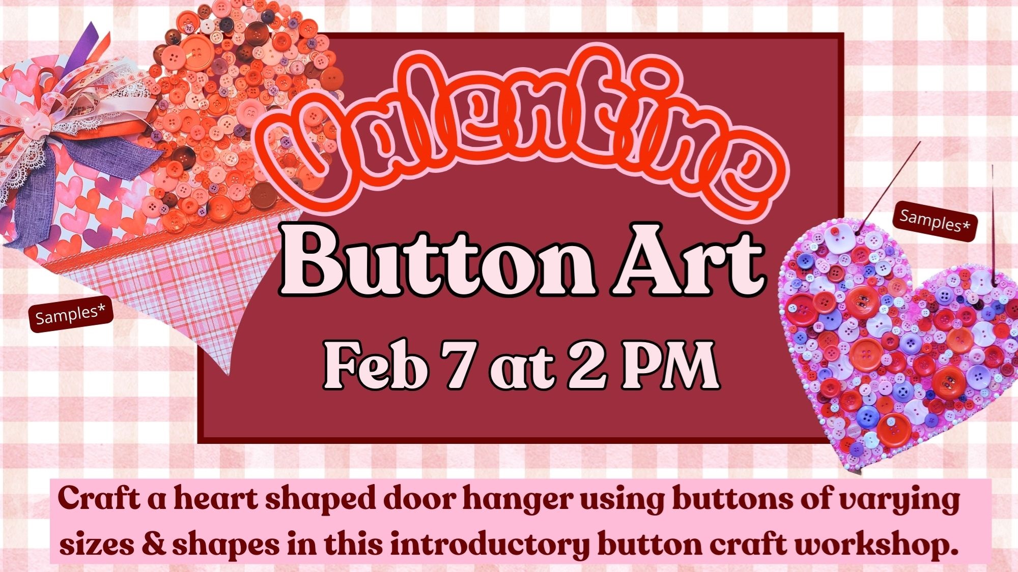 Feb 7 at 2 PMA workshop introducing an easy craft anyone can do! Button art allows you to bedazzle almost anything for whimsical and detailed decor. Create a wooden heart door hanger using buttons of varying sizes and shapes. All supplies provided, please sign up.