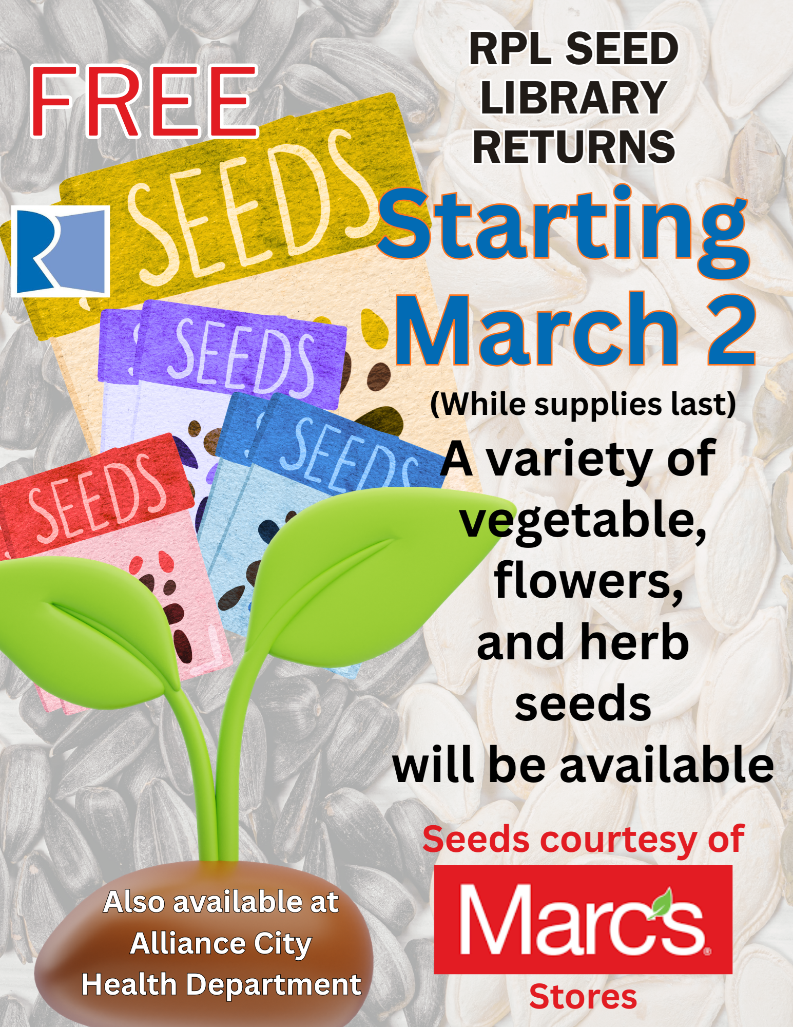 March Makerspace Programs There are four free Makerspace programs planned during the month of March at RPL, including: March 2 (4 p.m.) -- Ohio Wildlife Papercraft March 9 (4 p.m.) -- Crochet for Beginners March 13 (4 p.m.) -- DIY Frog Bookmarks March 26 (4 p.m.) -- DIY Plant Stakes