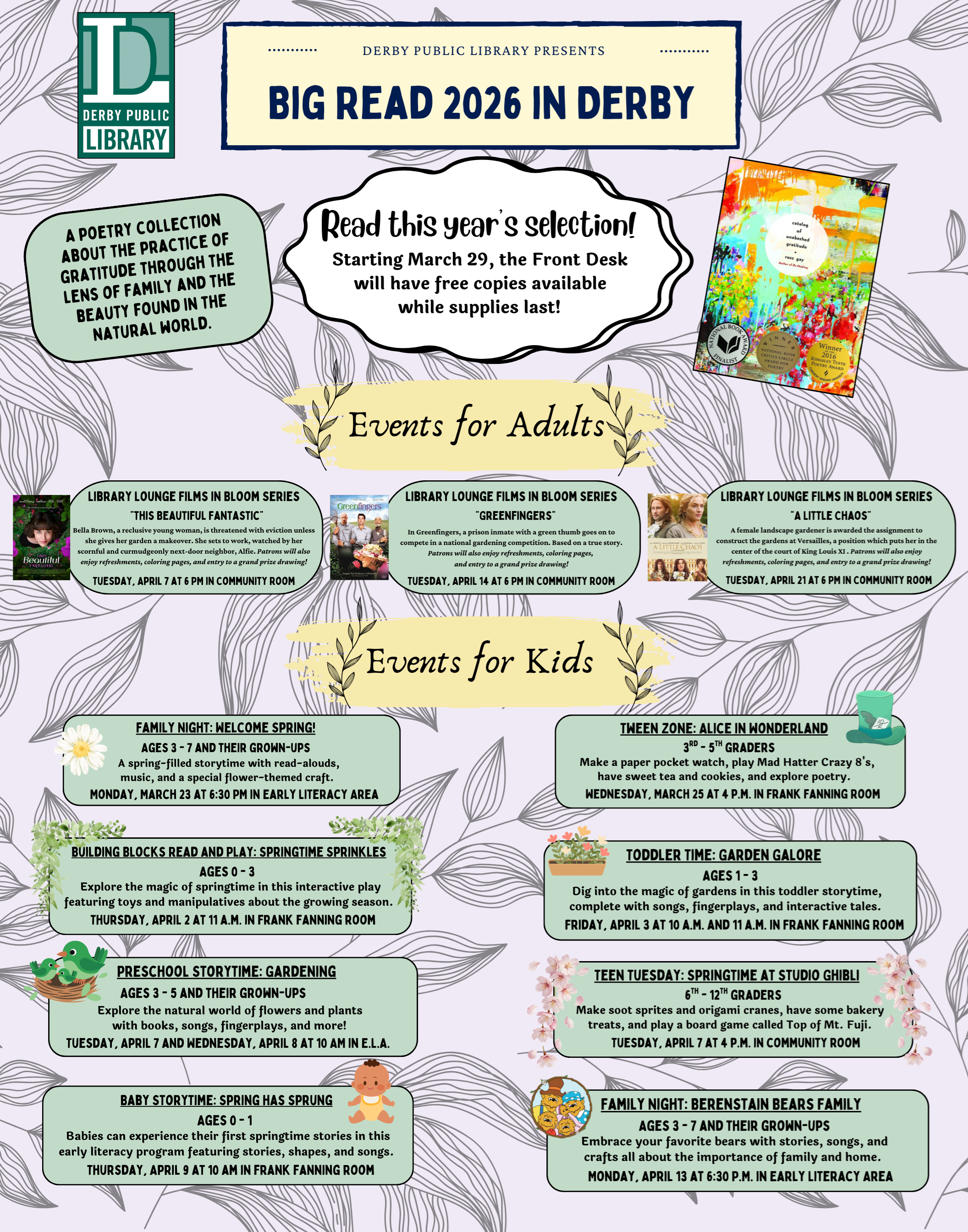 Amnesty Month Derby Public Library is once again celebrating Amnesty Month! During the entire month of April, patrons can return their overdue library books and other items and have their fines waived. This only happens once a year, so don’t miss out! Note: Amnesty Month is only available to Derby and Oaklawn home patrons. Patrons must visit the library in person to have fines waived.