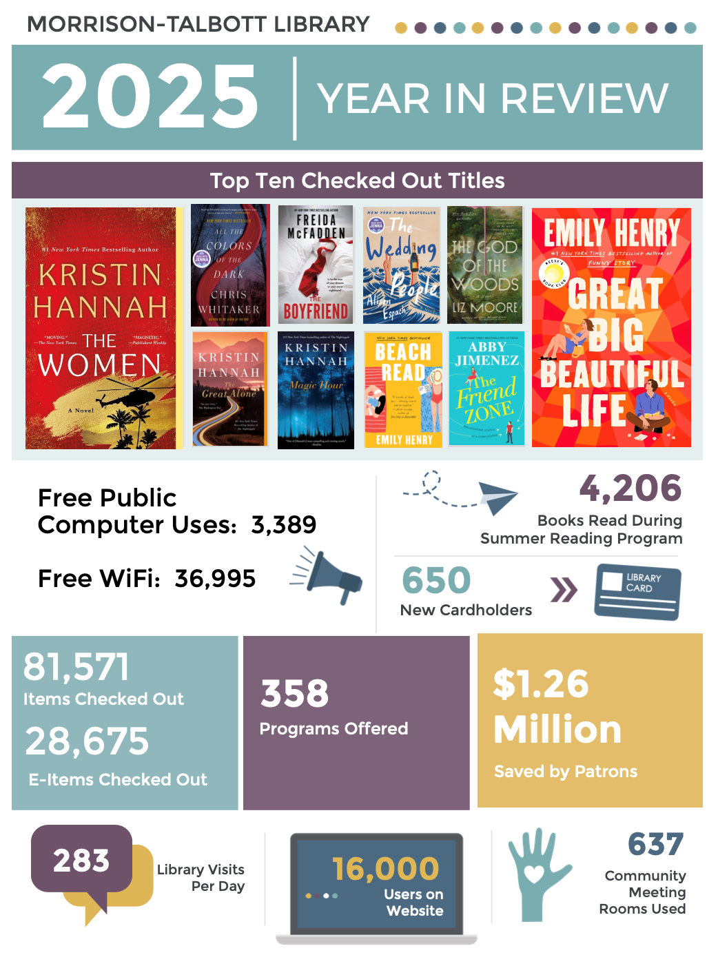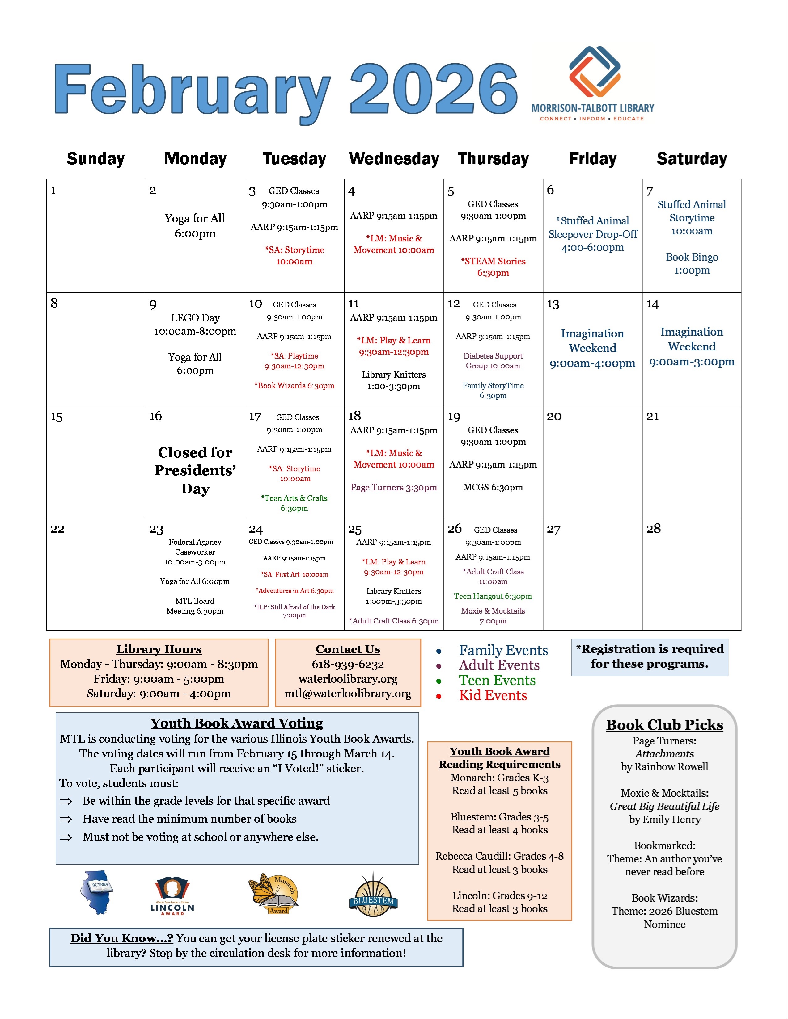 We kicked off January by launching two brand-new programs, and both are already off to a fantastic start. Our Movie Night Club saw its very first film, The Housemaid , during a Sunday matinee—and everyone agreed it was a pleasant surprise and thoroughly enjoyable. Send an email to sherrit@waterloolibrary.org or call 618-939-6232 to get added to the distribution