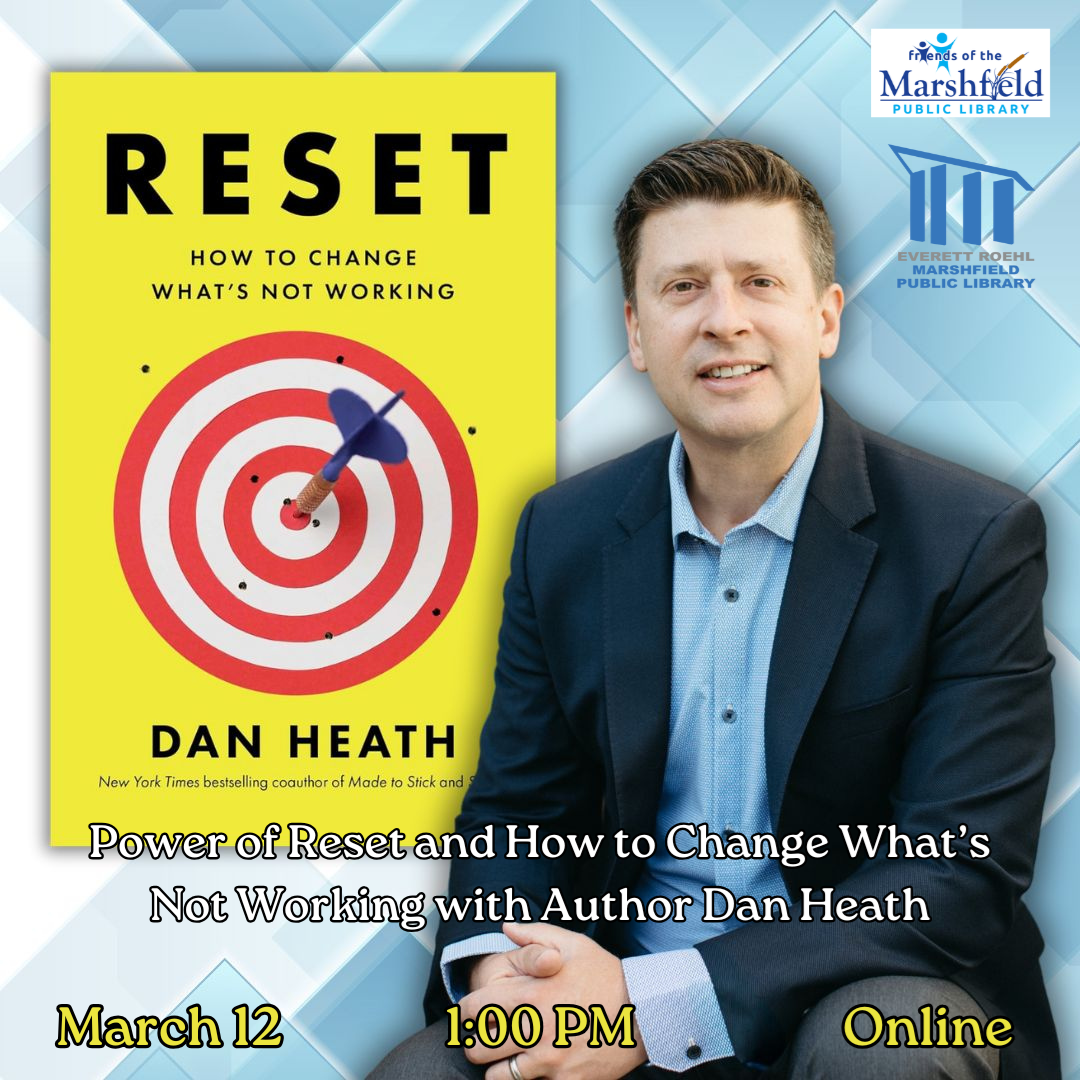Power of Reset and How to Change What’s Not Working with Author Dan Heath Wednesday, March 12 1:00 PM, Online Are you ready for a revolutionary guide to fixing what’s not working—in systems and processes, organizations and companies, and even in our daily lives? Join us for an enlightening online conversation with bestselling author Dan Heath as he talks with us about his newest book, Reset: How to Change What’s Not Working. To register or for more information, click here.