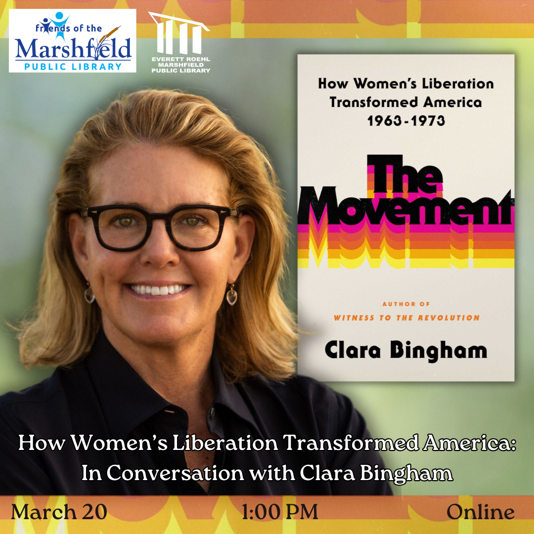 How Women’s Liberation Transformed America: In Conversation with Clara Bingham Thursday, March 20 1:00 PM, Online Join us for a transformative online conversation with award-winning journalist and author, Clara Bingham, as she chats with us about her new book, The Movement: How Women’s Liberation Transformed America, 1963-1973. To register or for more information, click here.