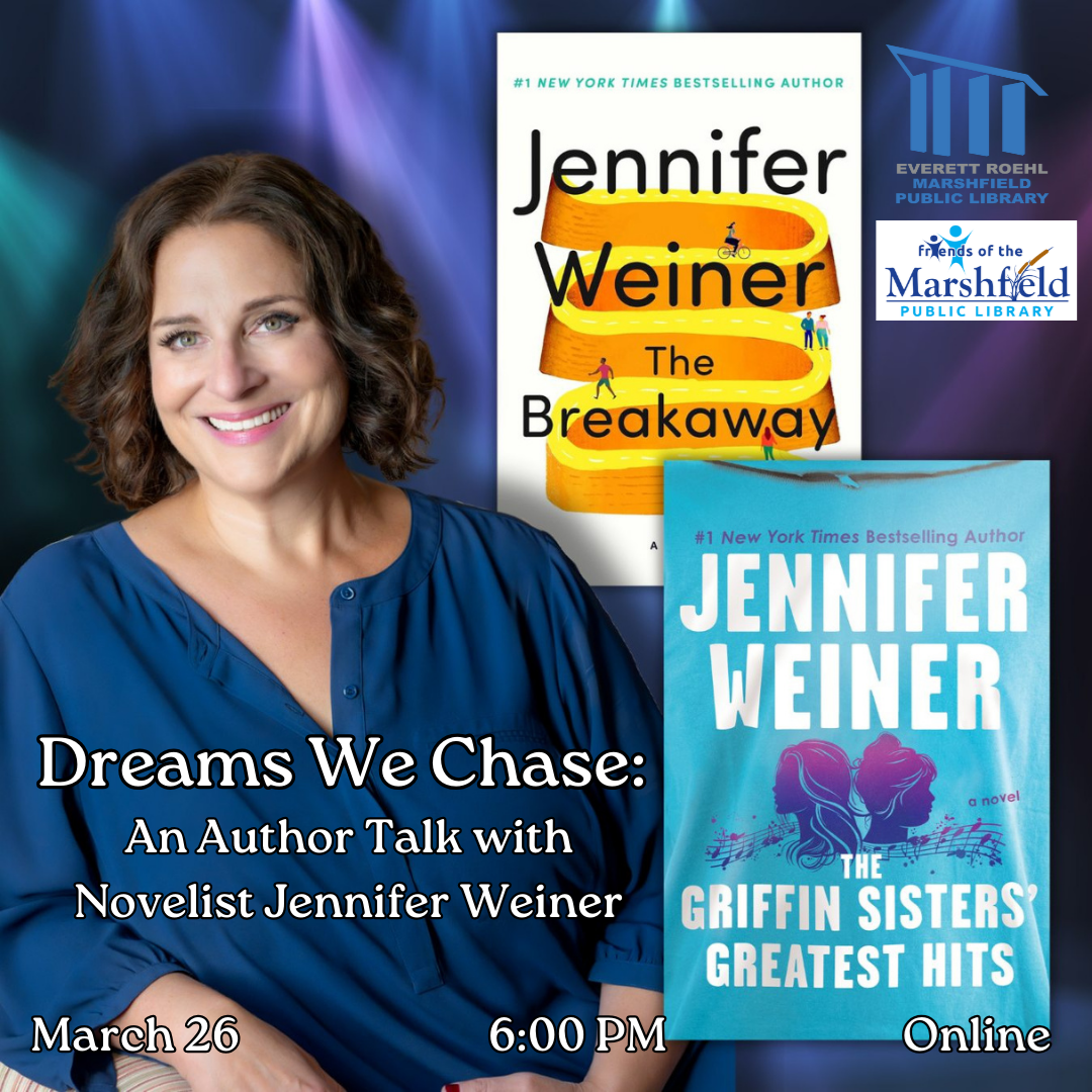 Dreams We Chase: An Author Talk with Novelist Jennifer Weiner Wednesday, March 26 6:00 PM, Online You’re invited to a glimmering online conversation with New York Times bestselling author Jennifer Weiner as we chat about the signature emotional depth of her books that have been inspiring readers toward self-discovery for decades. Hearing from the queen of fun herself, we’ll chat with the author about her New York Times bestselling novels, Good In Bed, In Her Shoes, Big Summer, The Breakaway, and many more. To register or for more information, click here.