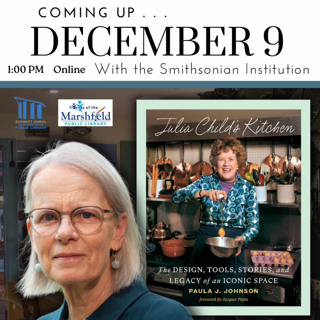 The Legacy of Julia Child's Kitchen with Author and Smithsonian Curator Paula J. Johnson Tuesday, December 9 1:00 PM, Online Join us for a conversation that’s sure to warm your heart (and make your stomach rumble), as we delve into the legacy of cooking icon Julia Child with Smithsonian curator and public historian Paula J. Johnson, author of Julia Child’s Kitchen: The Design, Tools, Stories, and Legacy of an Iconic Space. The book includes interviews with chefs who knew Julia well, commentary on her favorite culinary tools and kitchen gadgets, and a stunning array of photos. For mor information and to register, click here.