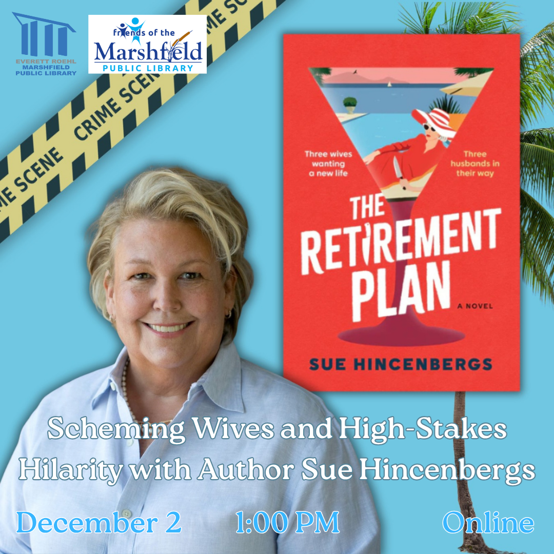 Scheming Wives and High-Stakes Hilarity with Author Sue HincenbergsTuesday, December 2 1:00 PM, Online Buckle up for a wild ride and join us as we sit down for an online chat with debut author Sue Hincenbergs to discuss her novel, The Retirement Plan, in which murder is the name of the game. When the only thing standing between three best friends and a sunny beachfront retirement condo are their husbands, what ensues is a diabolical plan to collect on their spouses’ life insurance policies. For more information and to register, click here.