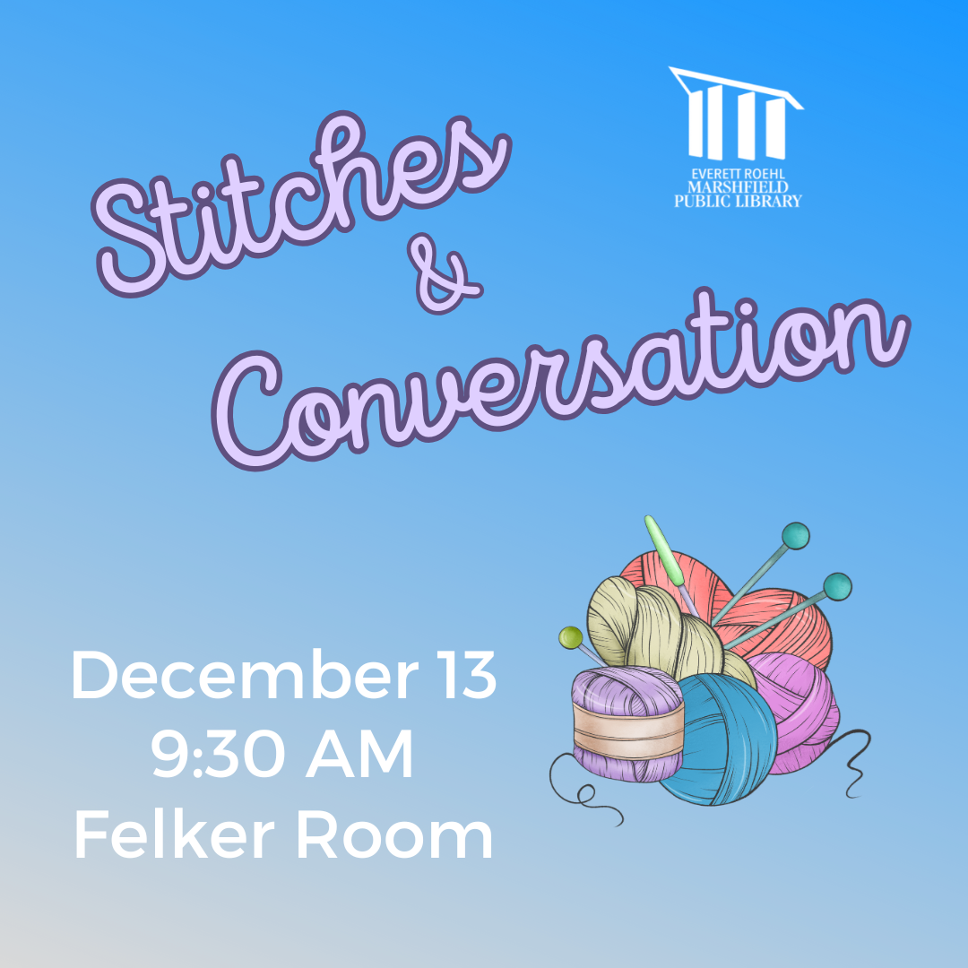 Stitches & ConversationSaturday, December 13 9:30 - 11:00 AM, Felker Room Stitches & Conversation is an open crafting group to share needle arts (knitting, crochet, etc) and other crafts, as well as conversation. All ages and skill levels are welcome. The group can help if you are just getting started or are stuck and need help on a project. Bring along your current project and supplies, whatever your craft may be.