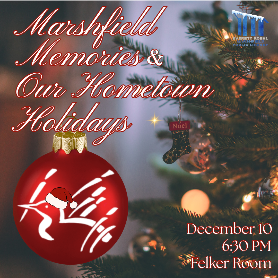 Marshfield Memories & Our Hometown Holidays Wednesday, December 10 6:30 PM, Felker Room Join us for a festive program celebrating Marshfield’s iconic holiday traditions. This special update spotlights the dazzling Christmas decorations that once transformed Central Avenue into the “Great White Way,” welcoming hunters heading north for deer season. We invite you to come prepared to share your own recollections of Christmases past—whether it’s a cherished family tradition, a favorite storefront display, or memories of Marshfield aglow. Let’s preserve the magic together! Free and open to all.